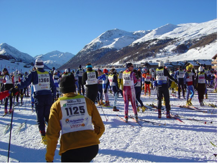 Getting ready to race at the Sgambeda, a 42km loppet event in Livigno (2004)